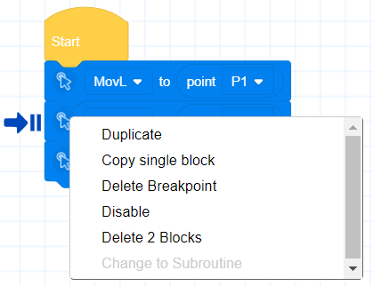 Add breakpoints in blockly programming