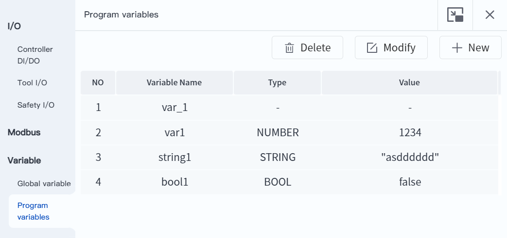 - Supports real-time monitoring of variables. Enter the "Monitor-Variables-Program Variables" interface and freely add variable names to be monitored. Program code debugging combined with real-time variable monitoring can accurately locate the root cause of the problem.