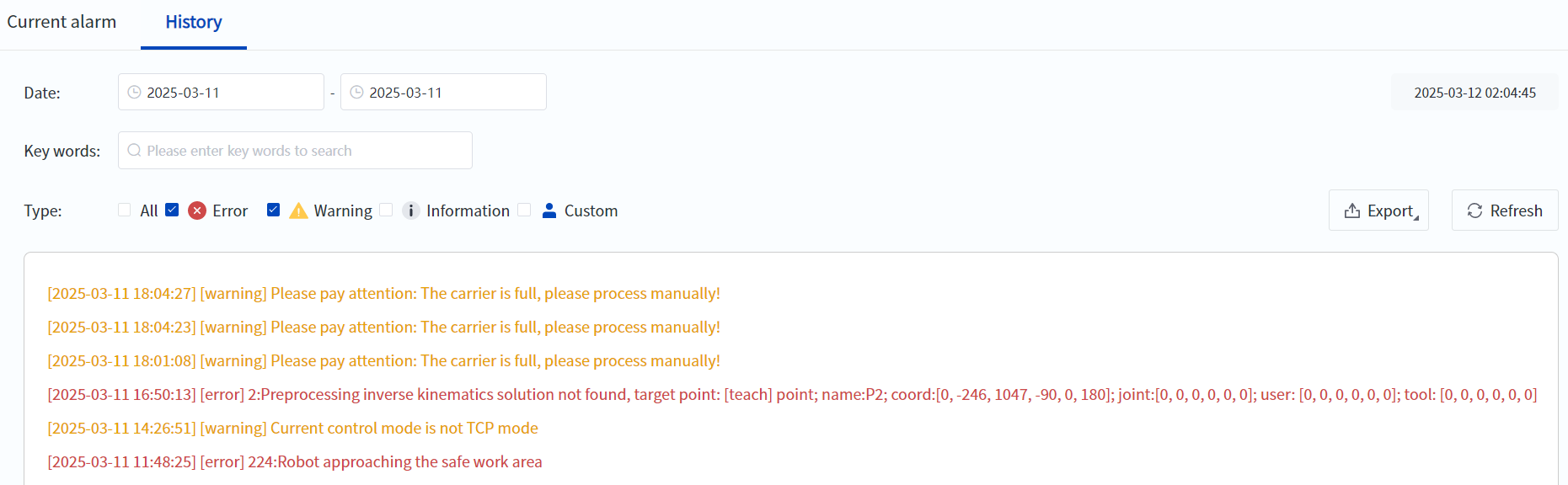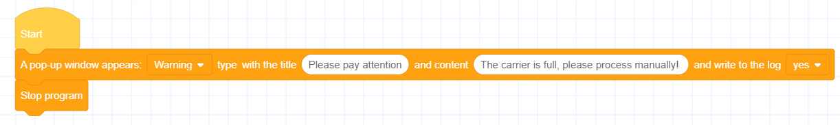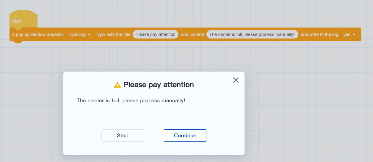 - You can choose to write the pop-up content into the robot log to facilitate querying and tracing historical production data and abnormal status.