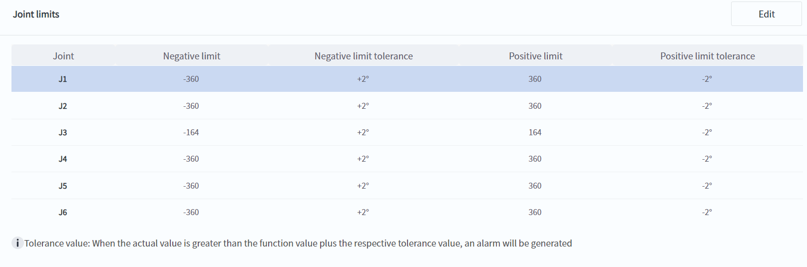 - The value of the joint soft limit can be changed through DobotStudio Pro. It should be noted that the actual joint motion range of the robot is constrained to the positive and negative limit setting values plus the tolerance.