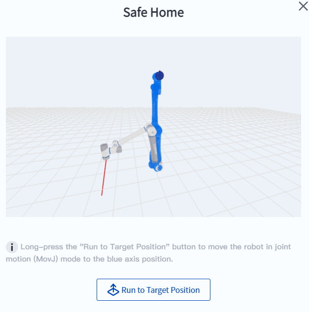 - The interaction of jogging to the target position is clearer. The robot's target position is displayed as a blue model, allowing users to intuitively understand the target position of the movement and predict the robot's movement path, identifying possible collisions or unreachable risks in advance.