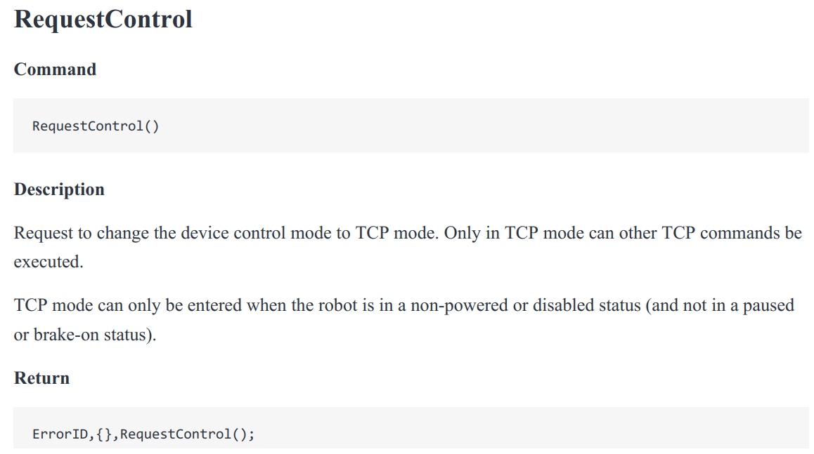 - In online mode, the robot can be switched to TCP mode through TCP commands. In this way, even if the DobotStudio Pro software is not connected, the robot can be switched to TCP mode for further control, improving the ease of use of the robot for secondary development.