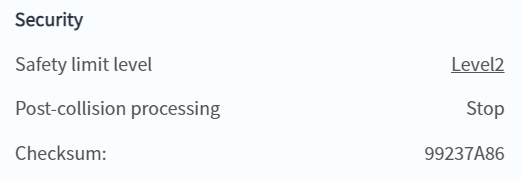 - You can view the robot's safety checksum on the status page. This parameter is uniquely determined by the safety parameters. Any modification of the safety parameters will cause the safety checksum to change.