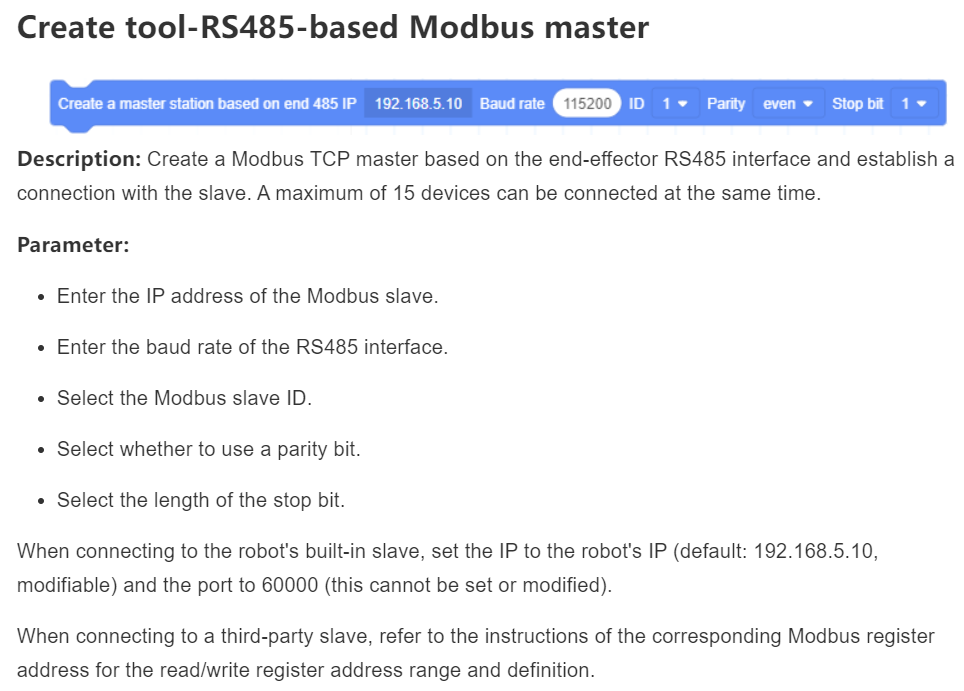 - Added Modbus master function building block based on RS485 interface at the end of robot body