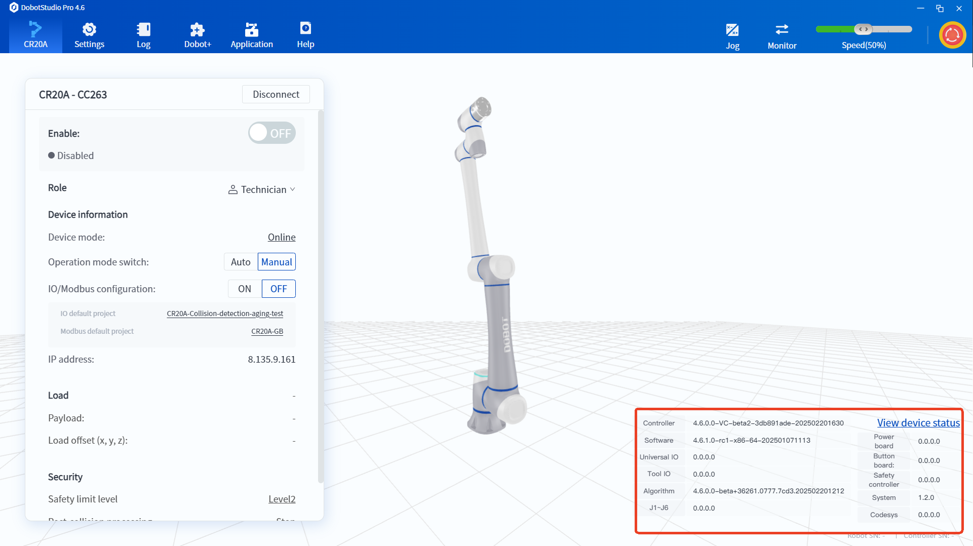 - In remote TCP mode, you can also view the robot's IO, variables, etc. through DobotStudio Pro software without switching the robot to online mode