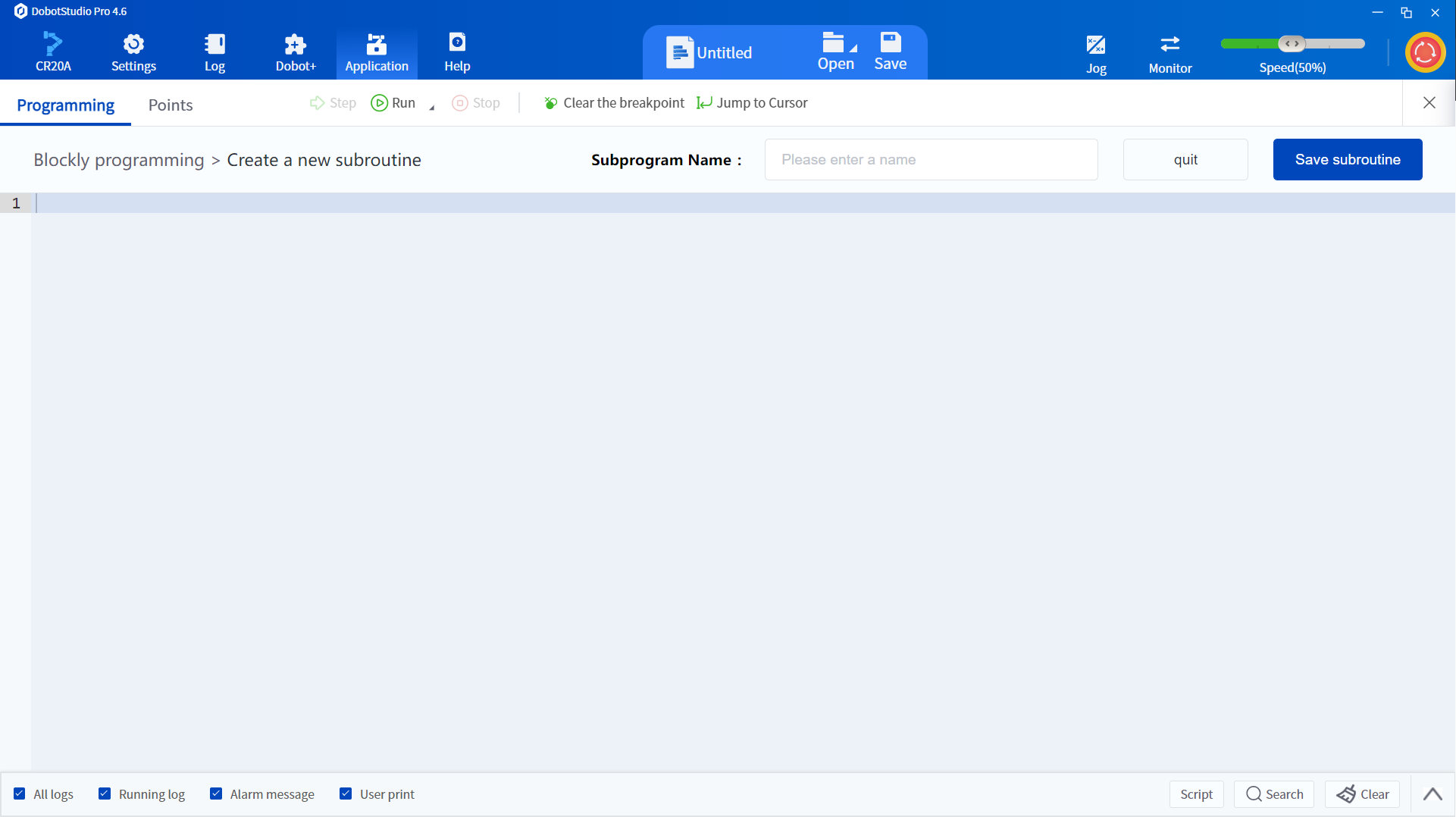 - Single-step function allows the robot to run the command program line by line, which is convenient for accurately locating problems. It should be noted that the robot can only perform single-step debugging when it is in the pause state.